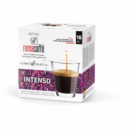 Capsule REMACAFFE Intenso, 16 buc., compatibile cu aparatele de cafea Nescafe Dolce Gusto